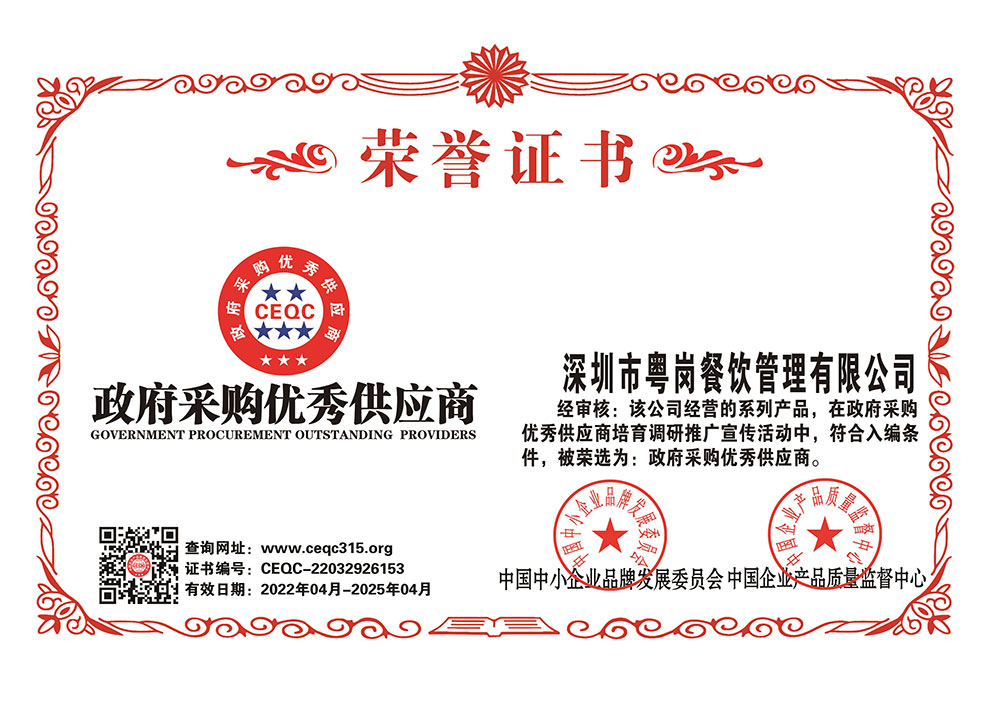 深圳市粵崗餐飲管理有限公司,是一家集蔬菜種植和農副產品配送為一體的專業型餐飲公司,主要為學校、工廠企事業機關單位提供蔬菜和農副產品配送服務。公司自成立以來始終以質優價廉、服務至上為原則,嚴格按照ISO:9001國際標準體系進行管理。同時建立了行業領先的配送中心、大型冷庫和保鮮庫、檢測中心以及專業化的配送團隊,能長期安全、穩定、準時的配送貨物。我們所有蔬菜均經過初步加工、無黃葉,無泥沙等雜質,利用率達97%以上...保障向用戶提供的各類食材的衛生和質量。公司為了適應不同客戶的需求,配有專業人員和配送車輛,實行“一對一”的服務體制,一心一意的為客戶服務,秉承粵崗誠實守信、服務第一、客戶至上的服務標準,真正讓客戶花最少的錢吃最好的菜?;泹彾嗄陙砗我孕佬老驑s,因為我們知道只有勇于擔當責任,才能承擔更大的責任,就是因為 粵崗員工貫徹公司態度決定一切、細節決定成敗的真理,從質量抓起,從服務做起,才創造了如今的規模化供應、統一性配送、專業化服務的粵崗。